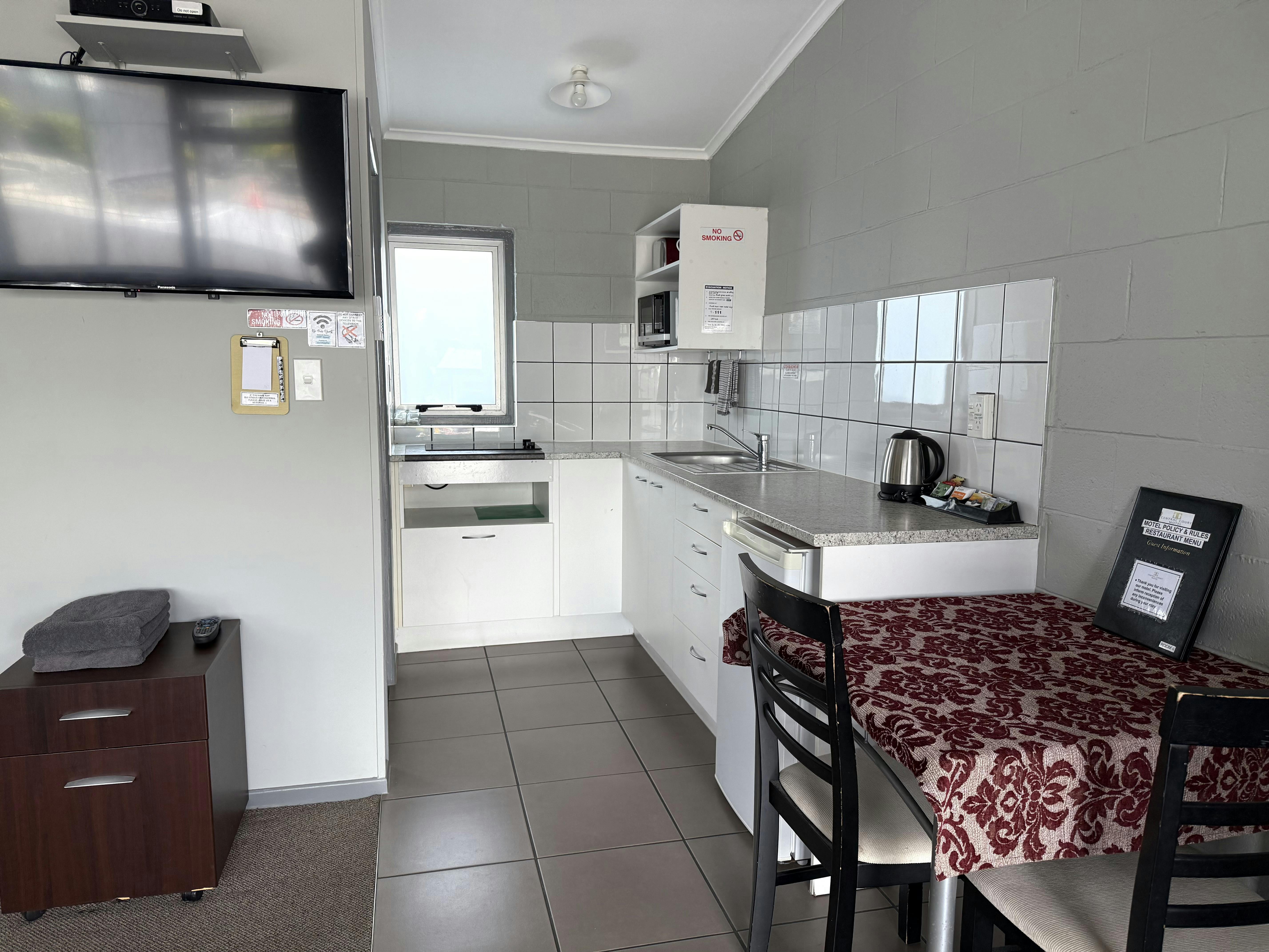 Spacious Studio unit complete with King-size bed, Ironing Facilities, TV with 50 Sky TV Channels, tea/coffee and ensuite bathroom. (Shower over bath ). Kitchen & dining facilities. 2 Plate Induction cooker, Refrigerator, Microwave, Electric kettle. Free Unlimited Wireless internet available. Heat Pumps / Air Conditioning. Guest Laundry onsite. All rooms are on the ground floor with parking directly outside. Heat pumps with Aircon
